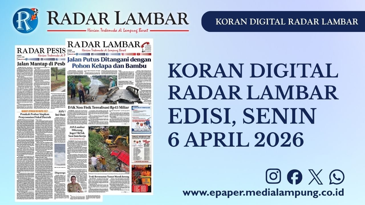 Home/Epaper Radar Lambar/Epaper Radar Lambar Edisi 6 April 2026 Epaper Radar Lambar Edisi 6 April 2026ByAndry Nurmansyah5 April 2026 Tag# epaper# Lampung Barat# radar lambar Bagikan Share on Facebook Share on X (Twitter) Share on WhatsApp Copy to Clipboard Andry Nurmansyah Articles: 1