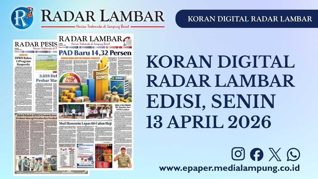 Home/Epaper Radar Lambar/Epaper Radar Lambar Edisi 13 April 2026 Epaper Radar Lambar Edisi 13 April 2026ByAndry Nurmansyah12 April 2026 Tag# epaper# koran digital# Lampung Barat# radar lambar Bagikan Share on Facebook Share on X (Twitter) Share on WhatsApp Copy to Clipboard Andry Nurmansyah Articles: 12