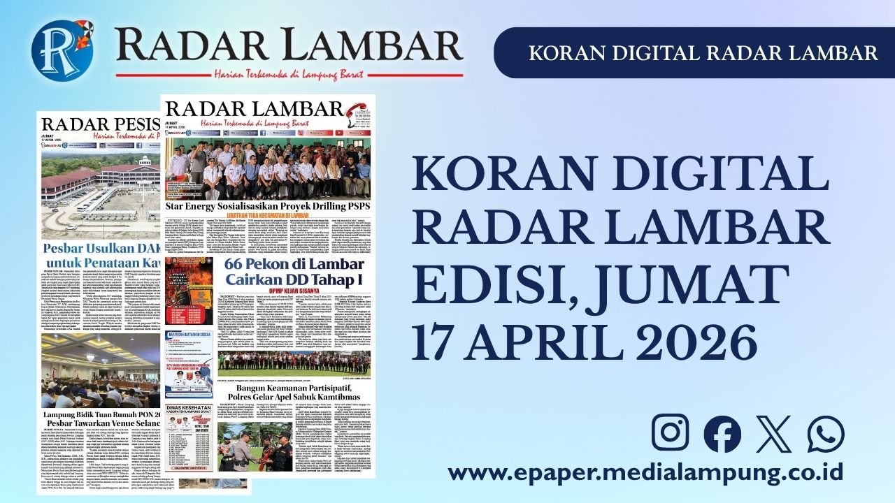 Home/Epaper Radar Lambar/Epaper Radar Lambar Edisi 17 April 2026 Epaper Radar Lambar Edisi 17 April 2026ByAndry Nurmansyah16 April 2026 Tag# epaper# koran digital# Lampung Barat# radar lambar Bagikan Share on Facebook Share on X (Twitter) Share on WhatsApp Copy to Clipboard Andry Nurmansyah Articles: 12